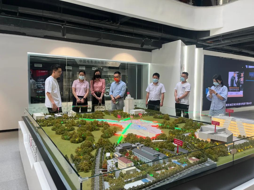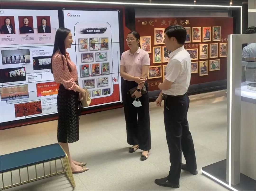 考察组一行参观了中国电影资料馆,工作人员现场介绍了全国影视资料馆分布、电影档案如何收集和编目以及“四史”教育电影课关于如何用好红色资源,赓续红色血脉等相关信息。管委会许奇树主任补充介绍了园区建设历史以及近期与快手合作的商业计划,并与吕小艳总经理就电商产业的发展进行详谈,吕总认为中国电影资料馆可链接阿里鲸探元宇宙数字资产平台,展开电影IP数字化商业运作道路。
